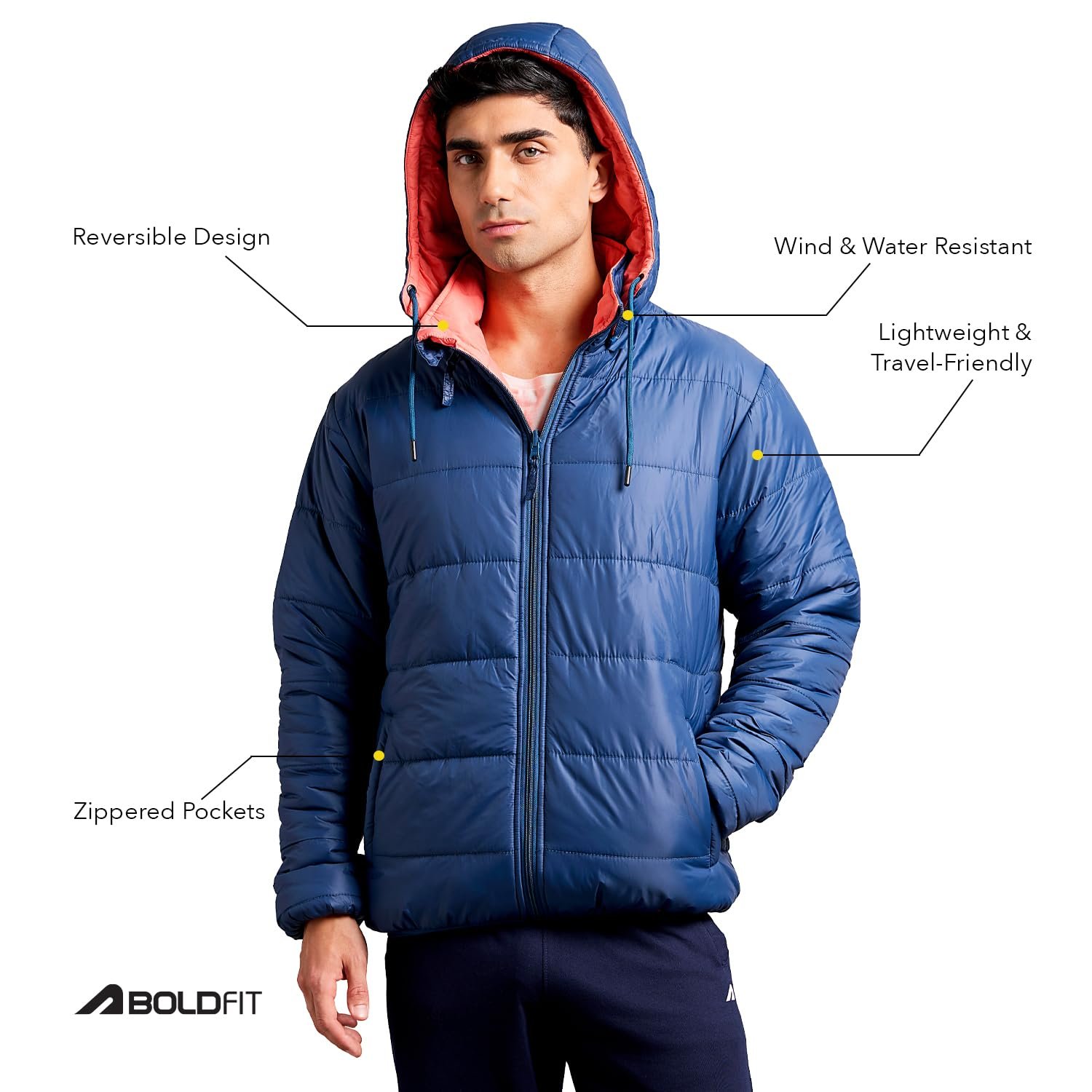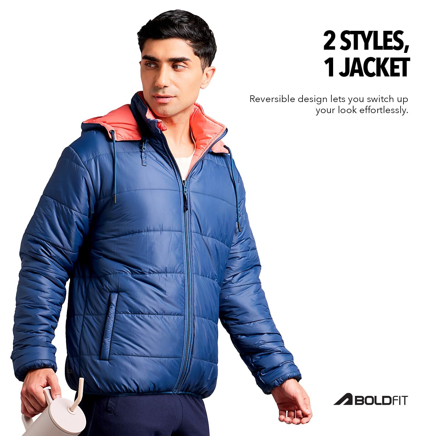 - LIGHTWEIGHT & INSULATED FOR EXTREME COLD: The Boldfit Reversible jacket for men is designed to provide maximum insulation in temperatures as low as. Despite its lightweight construction, this jacket for men stylish latest offers superior warmth without the bulk, making it the ideal choice for snowy terrains or cold city days. Stay warm and stylish as you take on winter adventures. this jacket is the perfect choice for those seeking a versatile outerwear option.