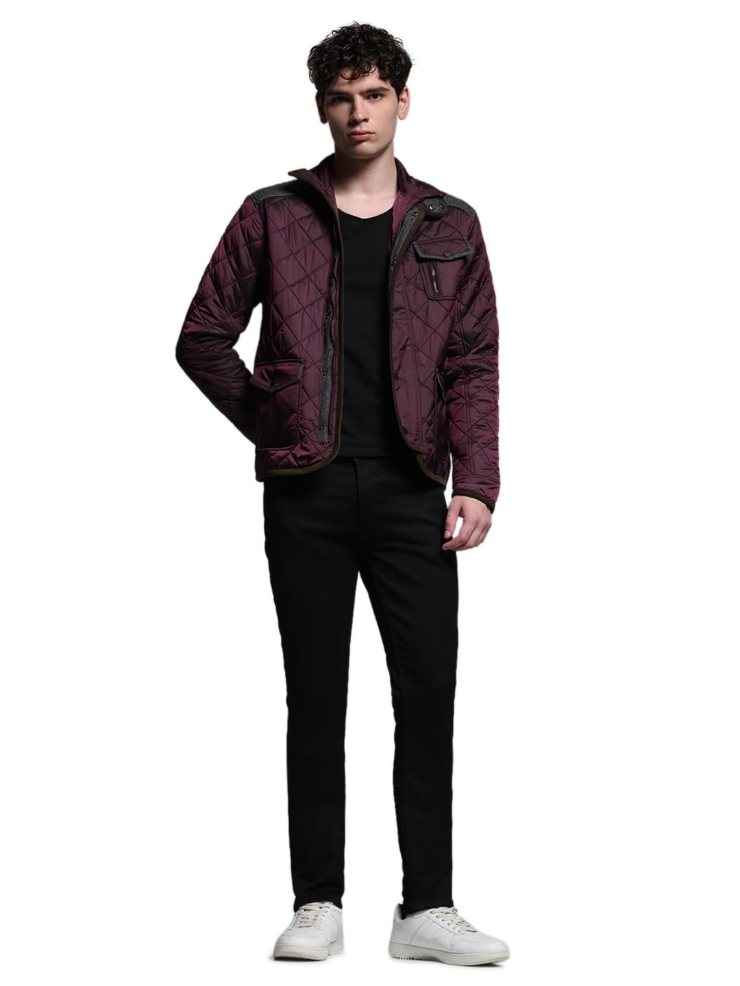 Jack & Jones Men Checks 100% Polyester Regular Fit Navy Blue Jacket
