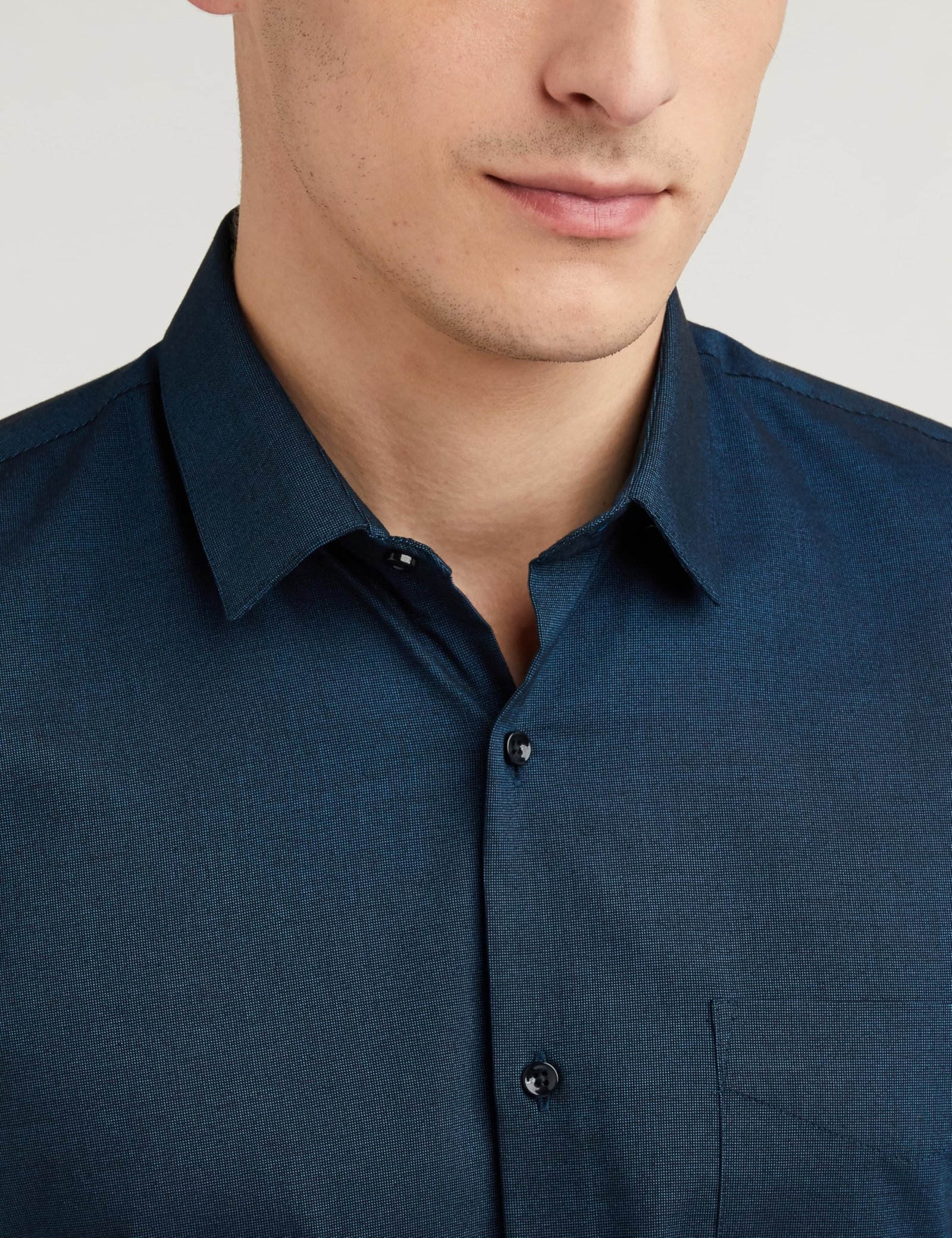 Made from Wonder Fabric CVC, combining softness and durability for lasting comfort. Cotton-rich composition ensures breathability and a refined feel. Crafted in classic pinpoint oxford weave for a smooth, polished texture. Solid color design for timeless, versatile formalwear. Features full sleeves with expertly tailored cuffs for a sharp, professional look